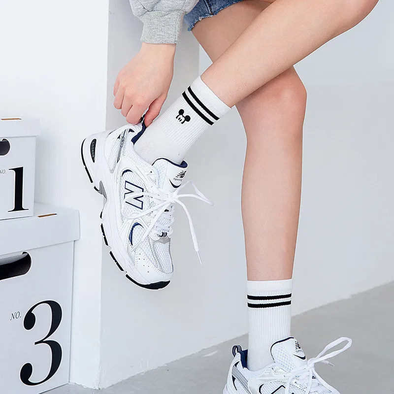 Name: Disney-Calcetines informales para mujer, medias cómodas de algodón con dibujos de Minnie, Mickey, bordado