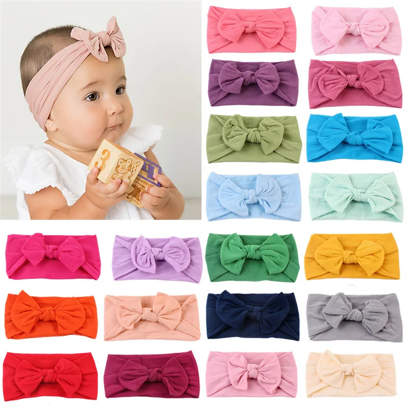Mejores Ofertas 1 Uds. De diadema para bebé, anudado turbante de nailon, accesorios para el cabello, diademas de 21 colores 1zW9WW8x9